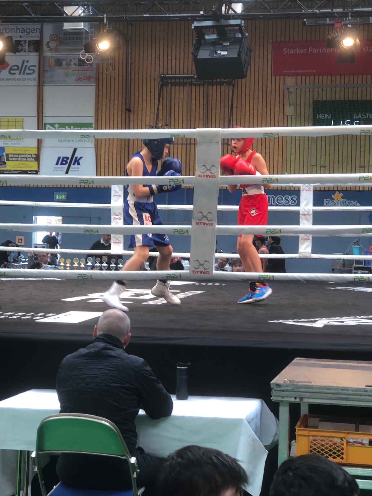 Am 17. März war auch unser Faustkämpfer Leonard Ehmke in der Altersklasse Kadetten in Stralsund vertreten. Für ihn ging es in seinem ersten offiziellen Wettkampf gleich ins Finale. Dementsprechend fieberten Leo und sein Trainerteam mit großer Anspannung dem Turnier entgegen.