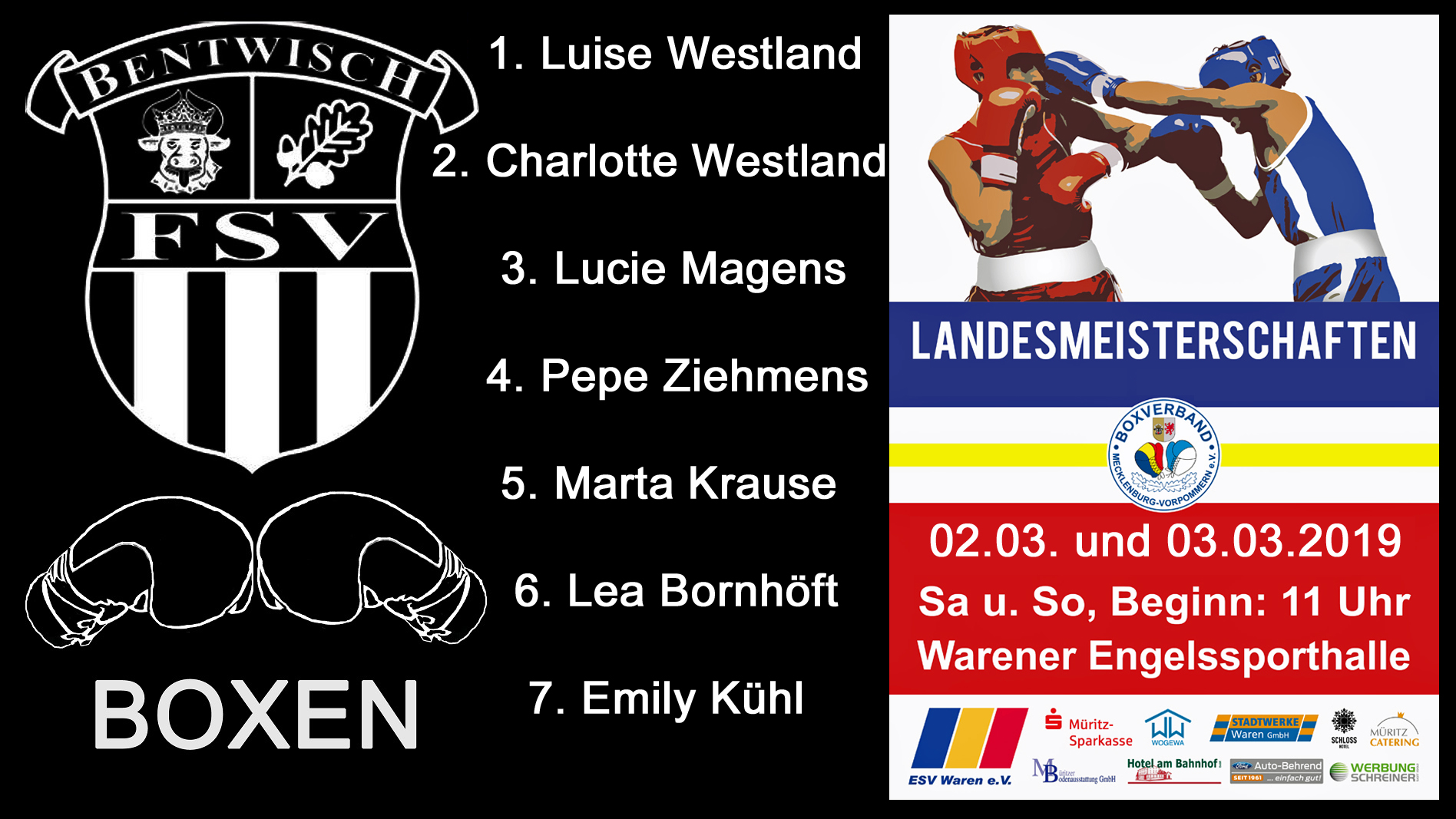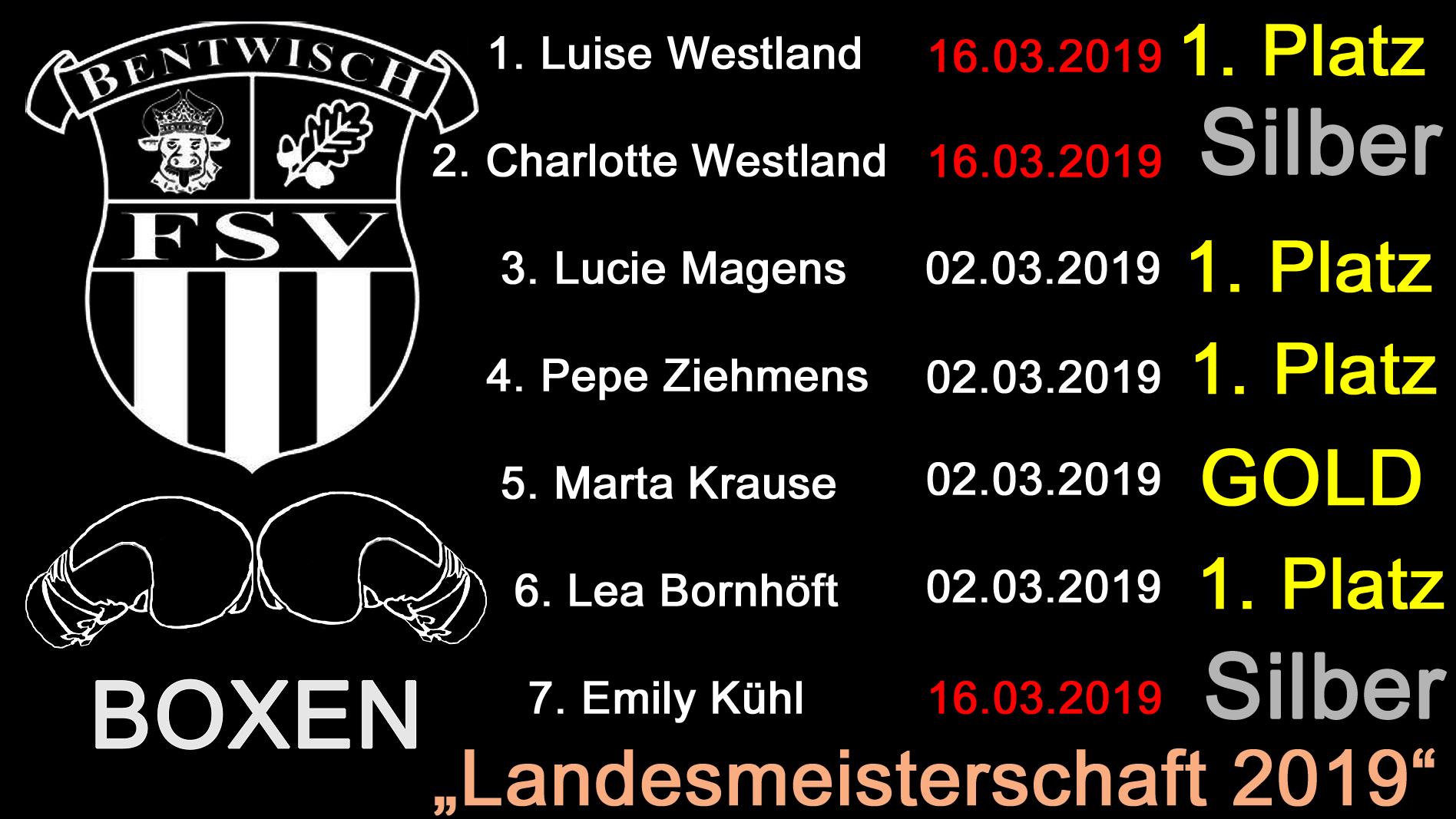 Es ist geschaft, die Landesmeisterschaften im Boxen vom 02.03.2019 bis zum 16.03.2019 sind beendet