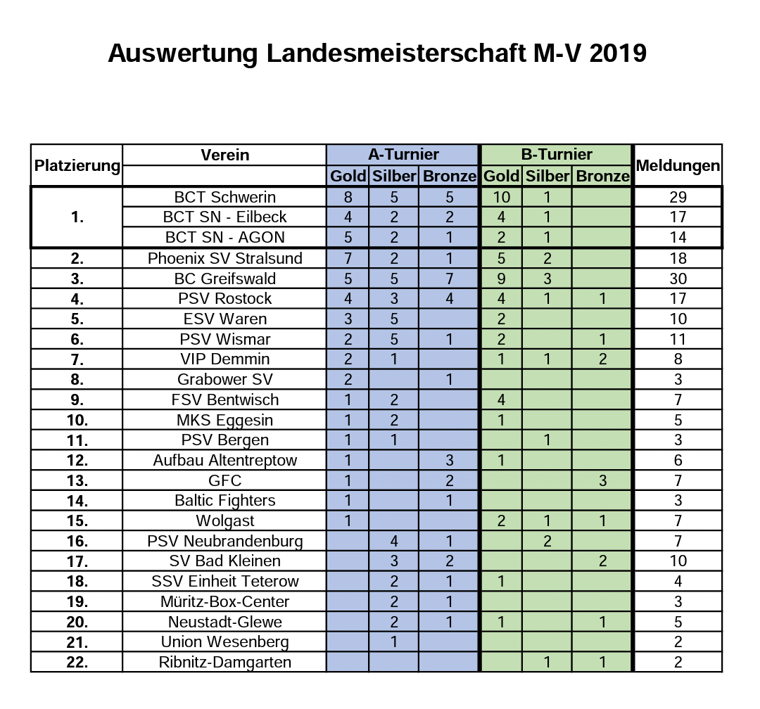 den 9. Platz von 22 Vereinen aus Mecklenburg-Vorpommern erreicht. Spätestens jetzt wissen die