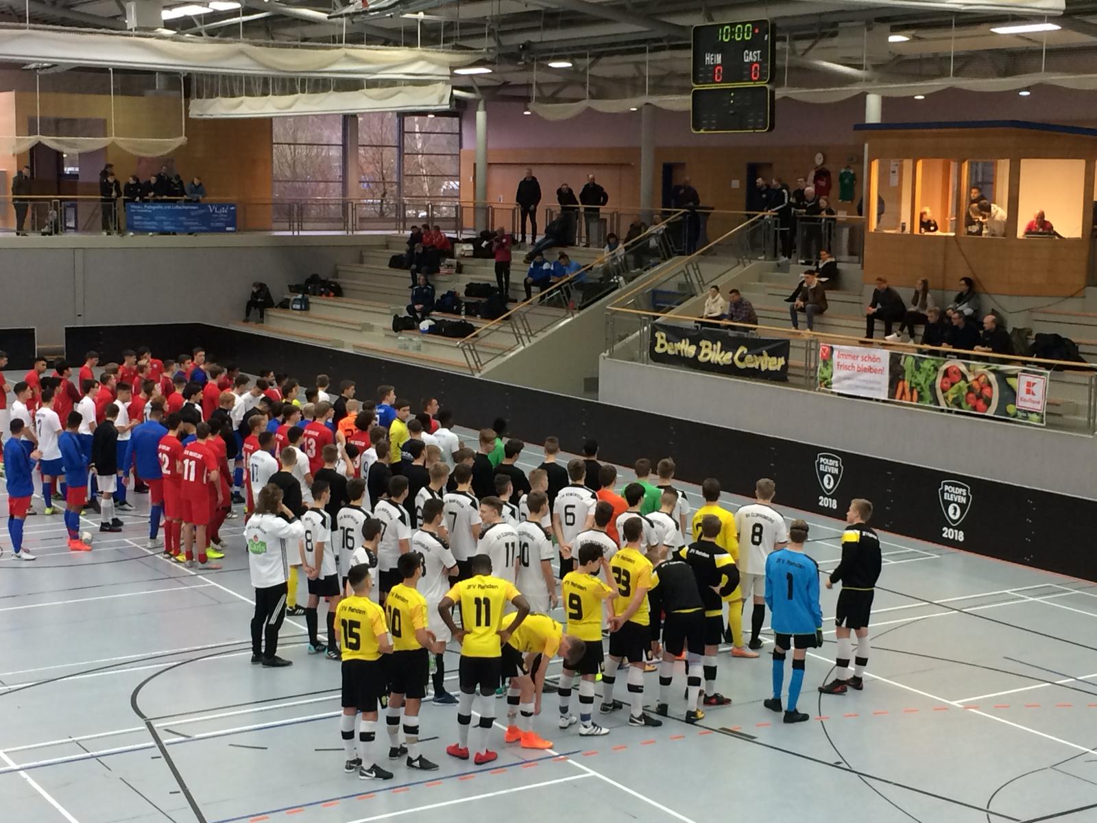 Das vergangene Turnierwochenende wird unsere U17 so schnell nicht vergessen. Zwar verpassten die Jungs beim Kaufland-Super-Cup im niedersächsischen Cloppenburg eine Überraschung im Hinblick auf die Platzierung. Doch gegen Teams aus der Bundesliga, Regionalliga, Niedersachsenliga oder Verbandsliga Bremen behauptete sich das Team von René Warning und Julian Kosel in weiten Teilen in starker Manier. Zwar blieb am Ende leider nur ein Punkt aus fünf Spielen, doch mit dem Gesamtauftritt können die Jungs zufrieden sein.