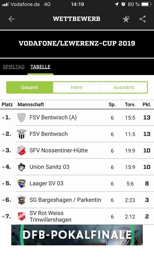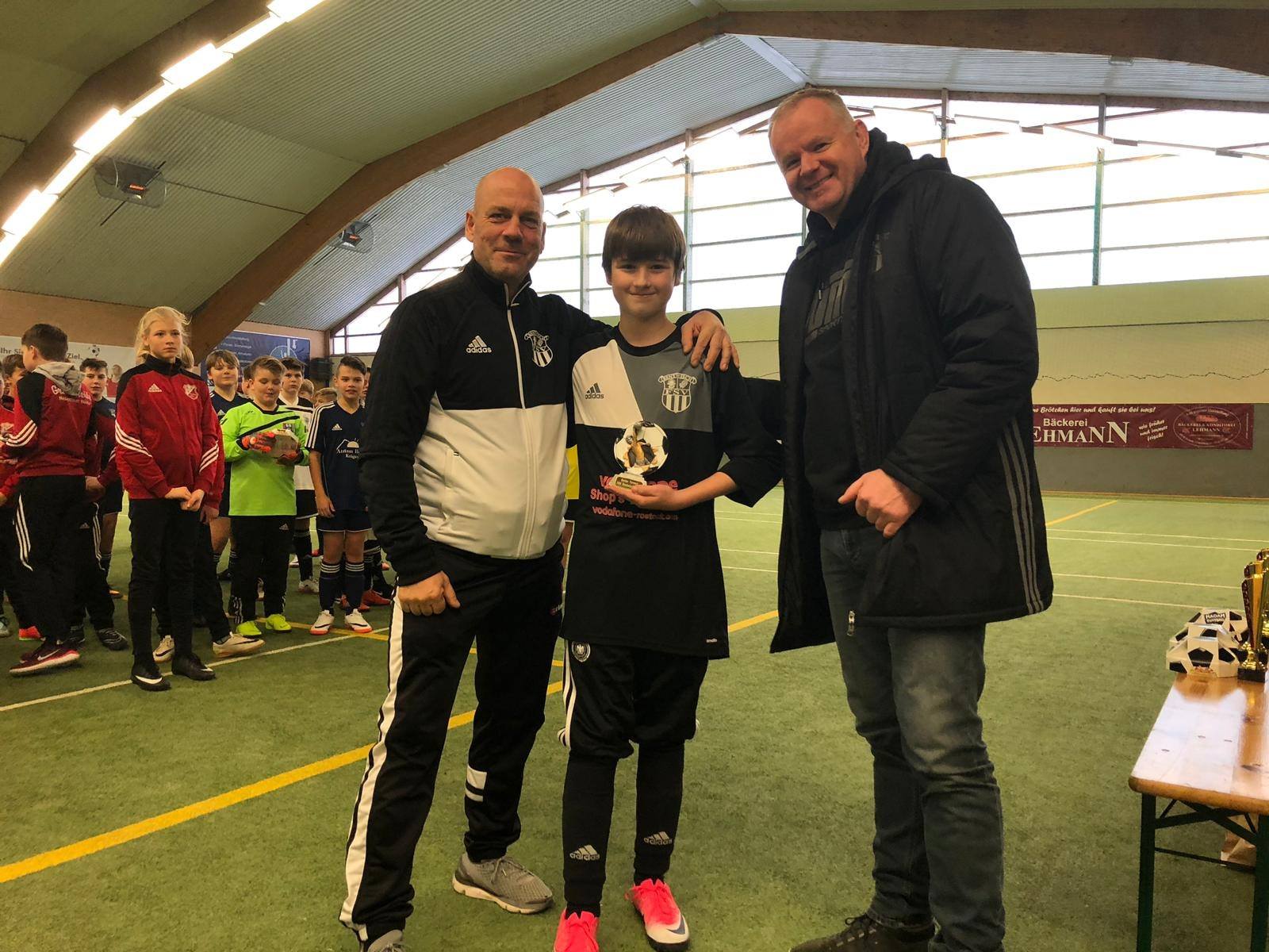 Toller Erfolg für unsere D-I-Junioren vom FSV Bentwisch. Sie stellten am Sonnabend zwei Teams beim eigenen Hallenturnier um den Vodafone Shop Rostock Cup 2019 und belegten am Ende die Ränge eins und zwei (Abschlusstabelle siehe Fotos). Alle Kinder hatten Spaß und bekamen ihre Einsatzzeiten. Tetje Schulz wurde außerdem als bester Torwart des Turniers ausgezeichnet. Zum besten Spieler wählten die Trainer Moritz Haase von Union Sanitz 03 e.V. Bester Torschütze war Mathis Scheibel vom SFV Nossentiner Hütte.