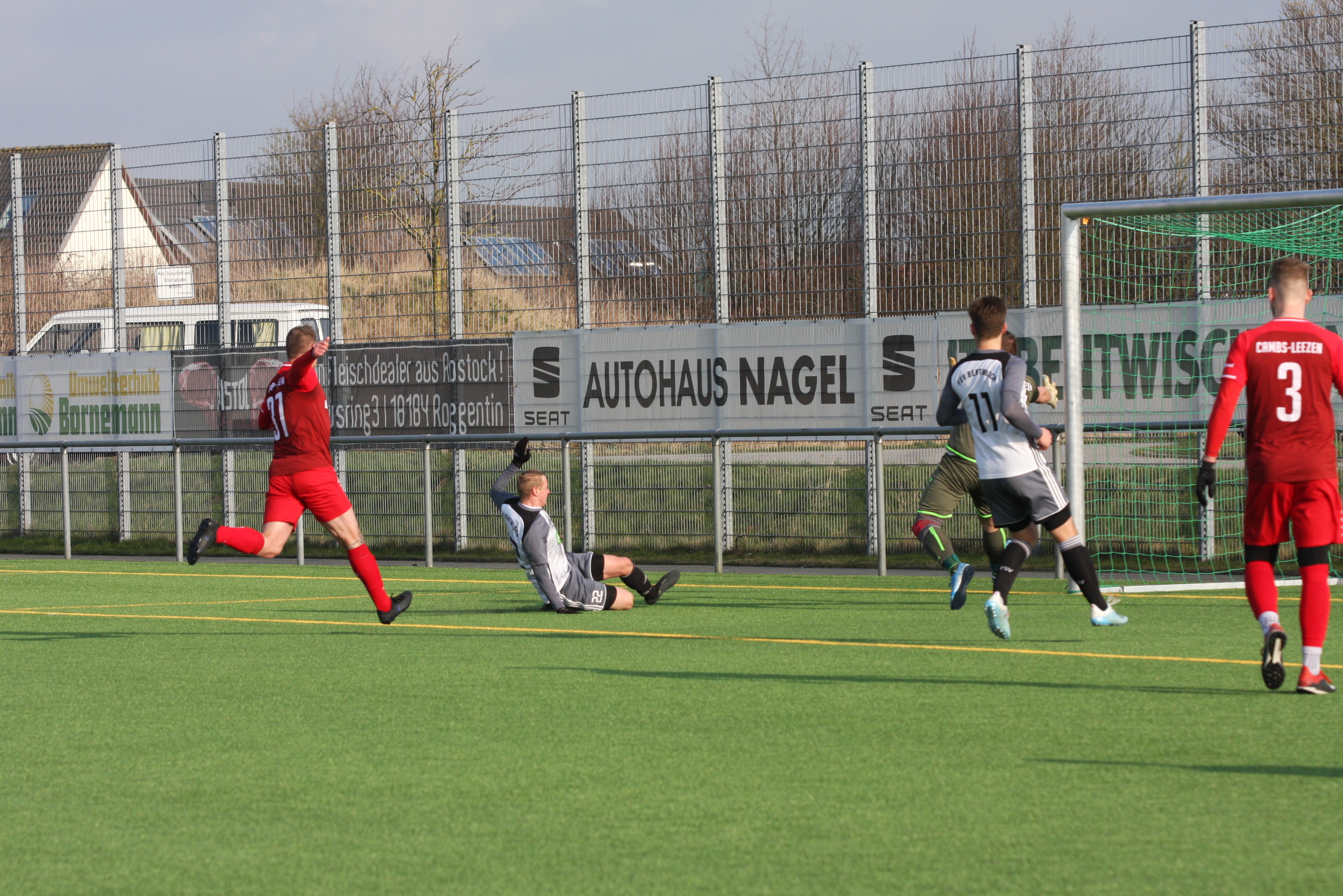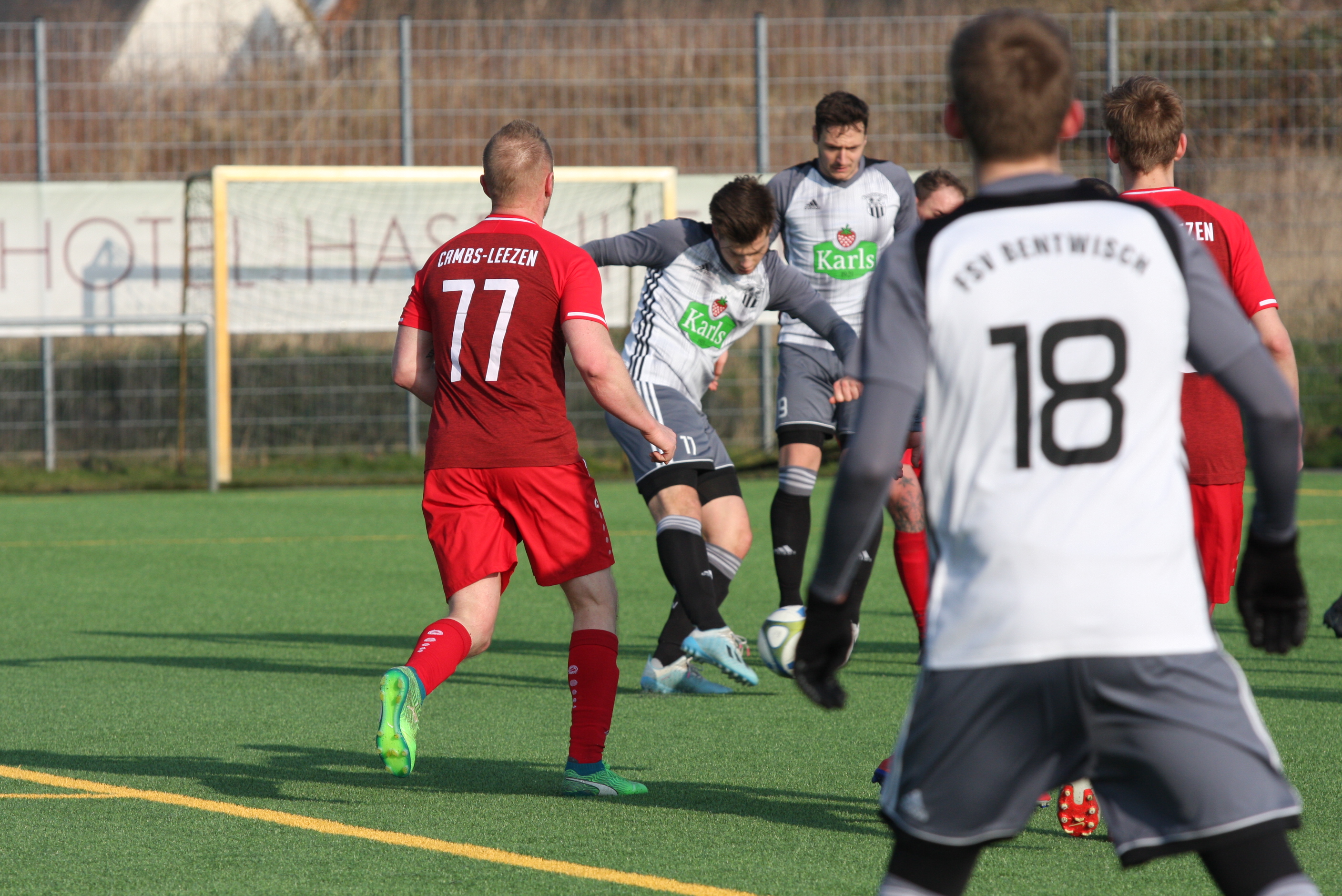 Einen Blitzstart legten unsere 1. Herren vom FSV Bentwisch am Sonnabend im Heimspiel gegen die SpVgg Cambs-Leezen hin. Bereits nach sechs Minuten führte unser Team mit 2:0. In der Folge wurden noch ein paar gute Gelegenheiten ausgelassen. Zweimal landete der Ball am Pfosten. Zu Beginn des zweiten Durchgangs kamen die Gäste wie aus dem Nichts durch einen sehenswerten Distanzschuss von Winter-Neuzugang Felix Michalski zum 1:2-Anschlusstreffer. Danach bestimmte unsere Mannschaft zwar weiter das Geschehen, beim letzten Pass oder im Abschluss mangelte es allerdings oft an der Genauigkeit.