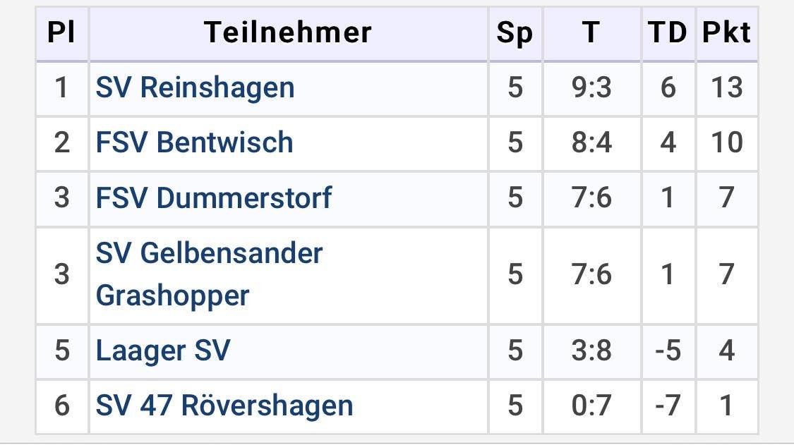 Schöner Erfolg für unsere E-2-Junioren vom FSV Bentwisch. Die Truppe der Trainer Bodo Voigt und Enrico Hautmann belegte beim Hallenturnier des FSV Dummerstorf den zweiten Tabellenplatz hinter Sieger SV Reinshagen. Das Team musste sich lediglich im vierten Spiel dem Laager SV mit 2:3 geschlagen geben. Turniersieger SV Reinshagen konnte nur gegen die Bentwischer keinen Sieg einfahren. "Zum ersten Mal war unsere Leistung gleichbleibend super über alle Spiele", meinte Bodo Voigt. Zuvor hatte seiner jungen Mannschaft oft die nötige Konstanz gefehlt, um Zählbares einzufahren.