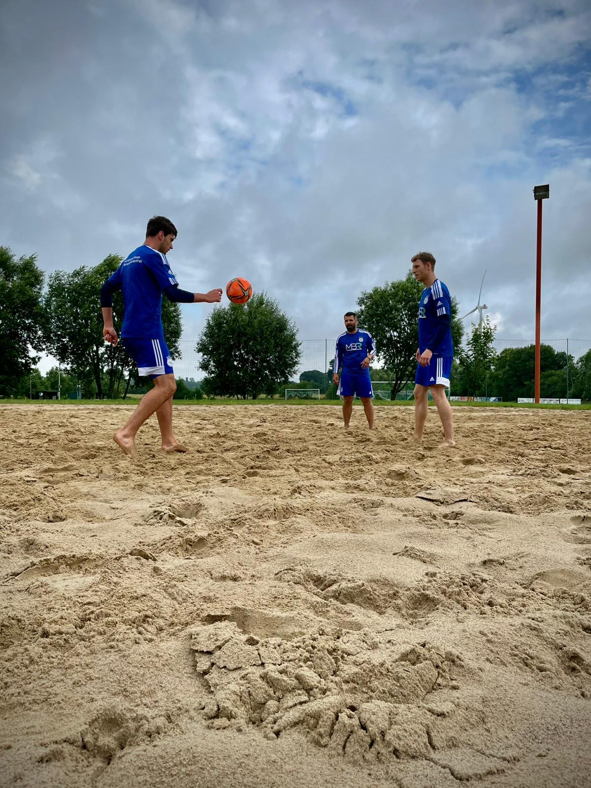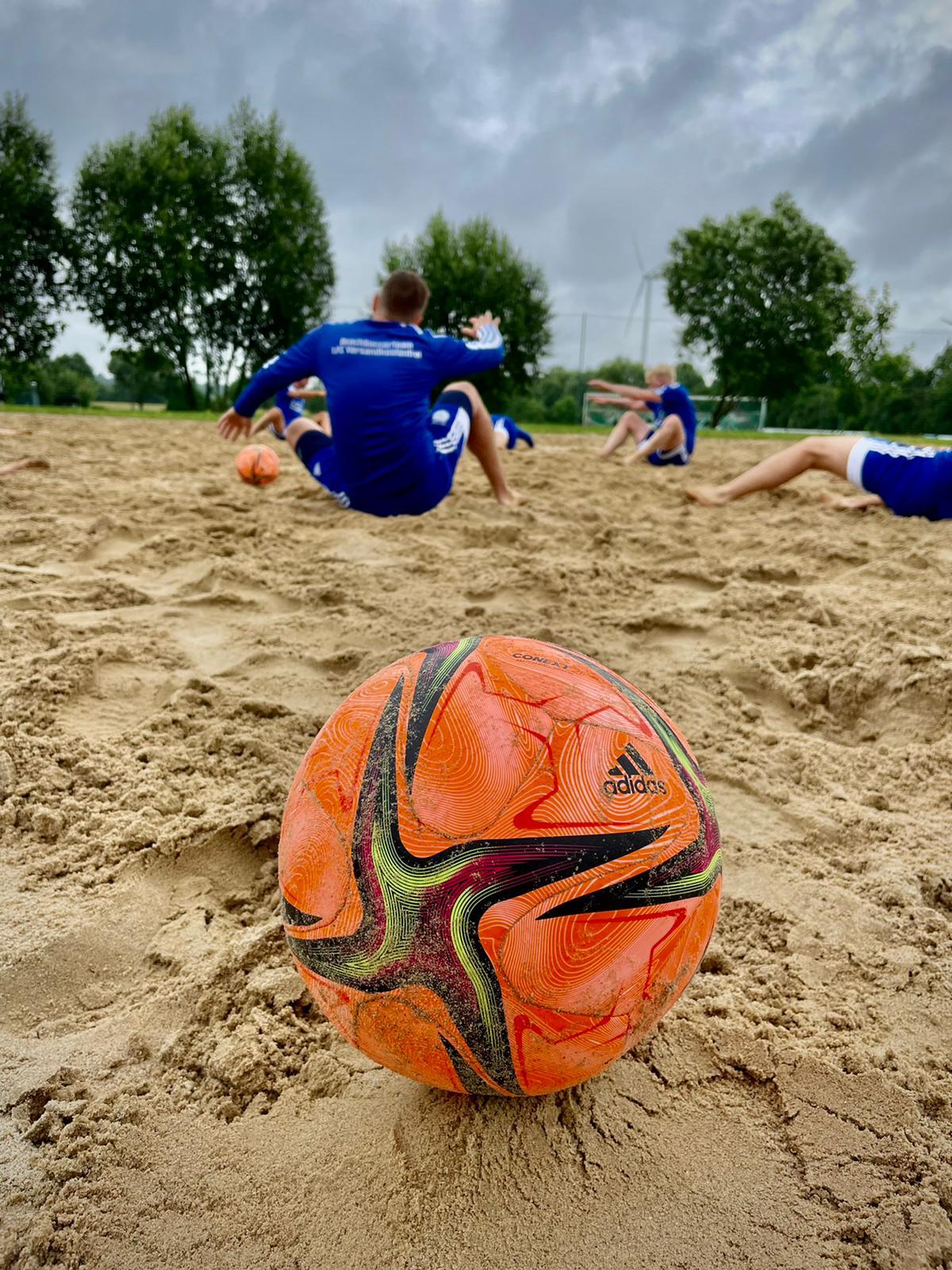 Am vergangenen Wochenende stand bei unseren Jungs vom Beachsoccer, dem 1. FC Versandkostenfrei, ein Trainingscamp an. Mit den beiden offiziellen Trainingseinheiten von Donnerstag und Montag kickte die Mannschaft fünf Tage hintereinander im Sand. Ziel des Camps war es vor allem, die neuen Regeln kennenzulernen und an taktischen Herangehensweisen zu arbeiten. Dafür fuhr das Team am Samstag nach Siebenbäumen in Schleswig-Holstein, um auf der Anlage des SV Grün Weiß Siebenbäumen in Ruhe zu trainieren. „Die Jungs haben großartig gearbeitet und voll mitgezogen bei den Einheiten", lobte Spielertrainer Christoph Lüth und bedankte sich: "Toll, dass wir auf der Anlage in Siebenbäumen trainieren durften.