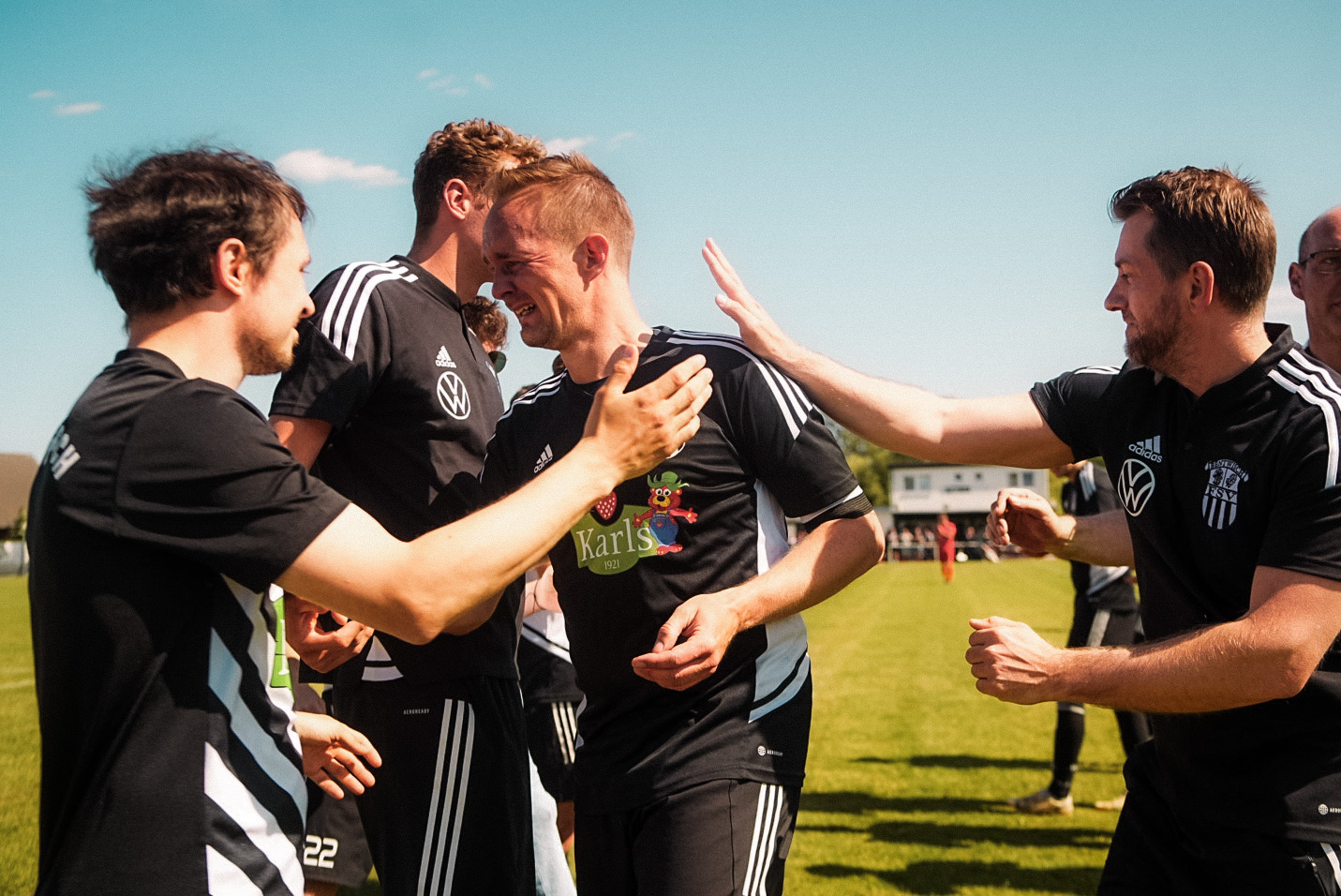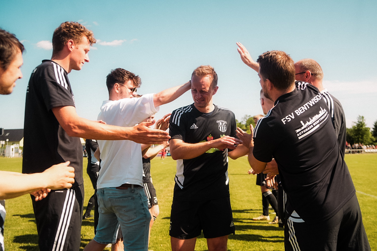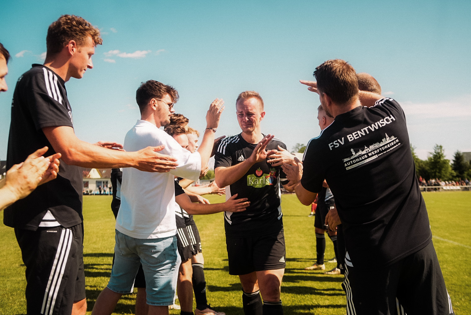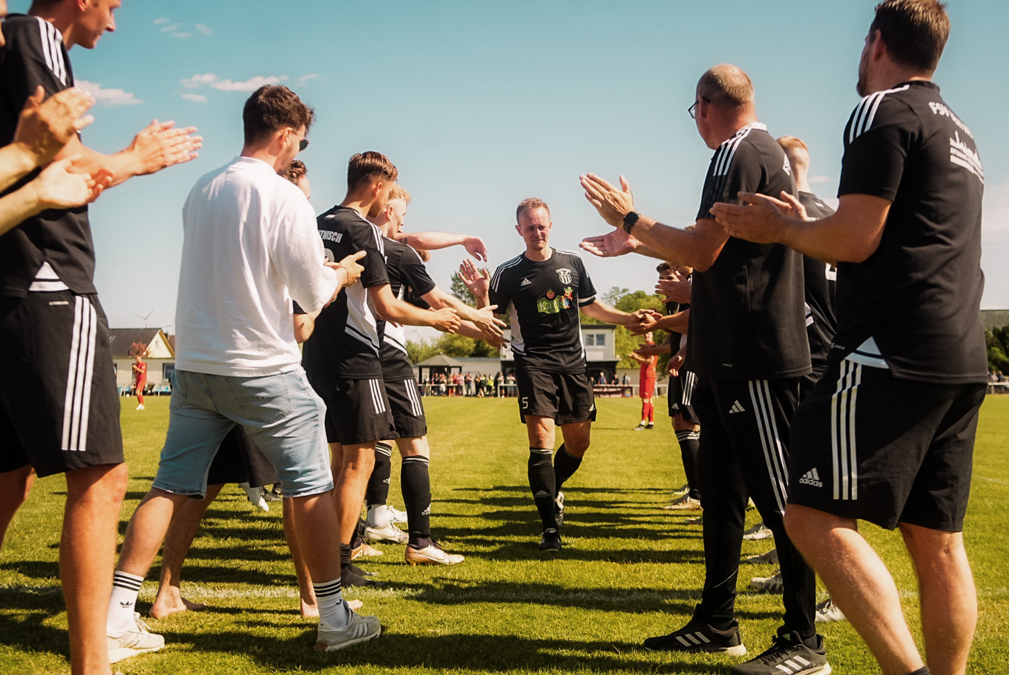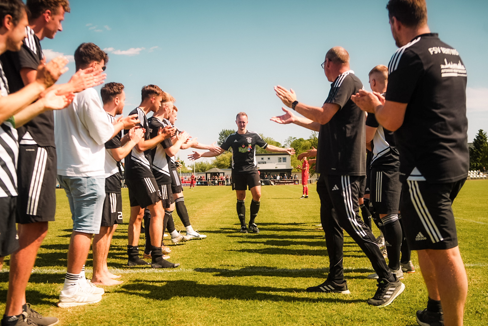 Kurz vor dem Abpfiff wurde es dann noch mal emotional. In der 88. Minute wurde Kapitän Stefan Geers in seinem letztem Heimauftritt ausgewechselt. Im Spalier seiner Mitspieler, Trainer und Betreuer verließ der 38-Jährige mit Tränen in den Augen den Platz. Für ihn wurde Florian Schütt eingewechselt. Für den Abwehrspieler war es der erste Saisoneinsatz nach langer Verletzungspause. Herzlich Willkommen zurück! Schön, dass du wieder auf dem Feld stehst, Schütti