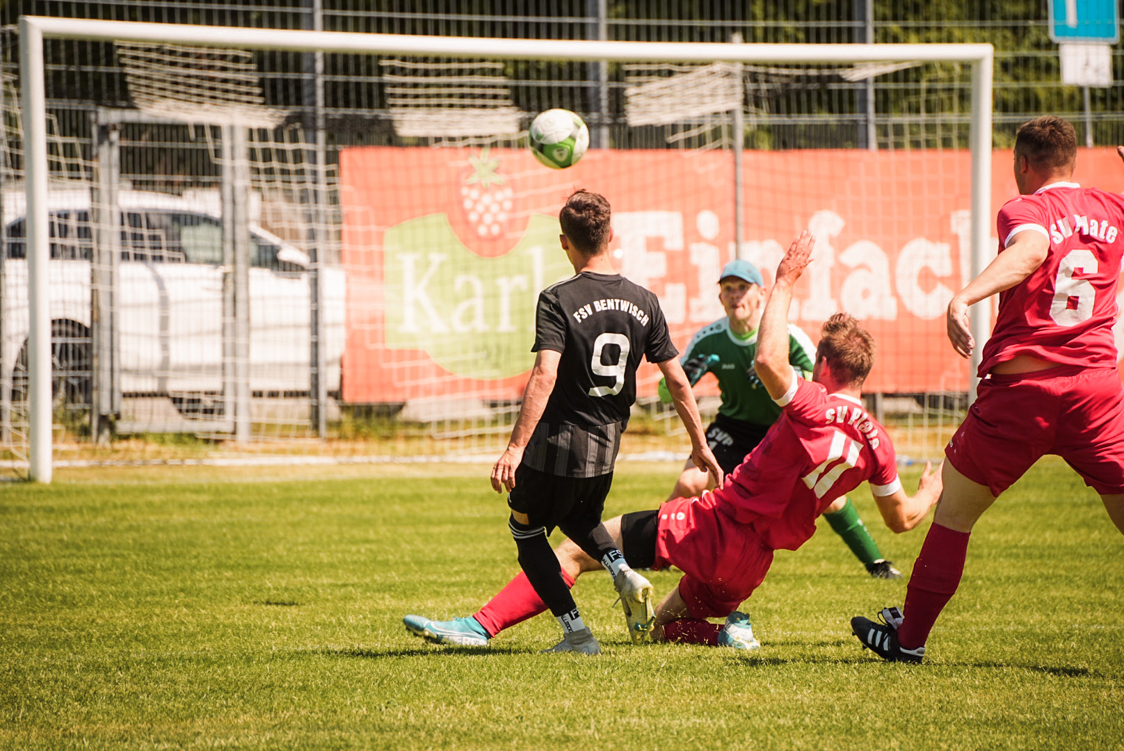 Die Bentwischer gaben zwar den Ton an, gerieten in der 15. Spielminute aber in Rückstand. Routinier Tobias Vogt konnte in seinem Abschiedsspiel den Ausgleich erzielen (28.), unmittelbar vor der Pause netzten der SVP aber zur erneuten Führung ein (45.).