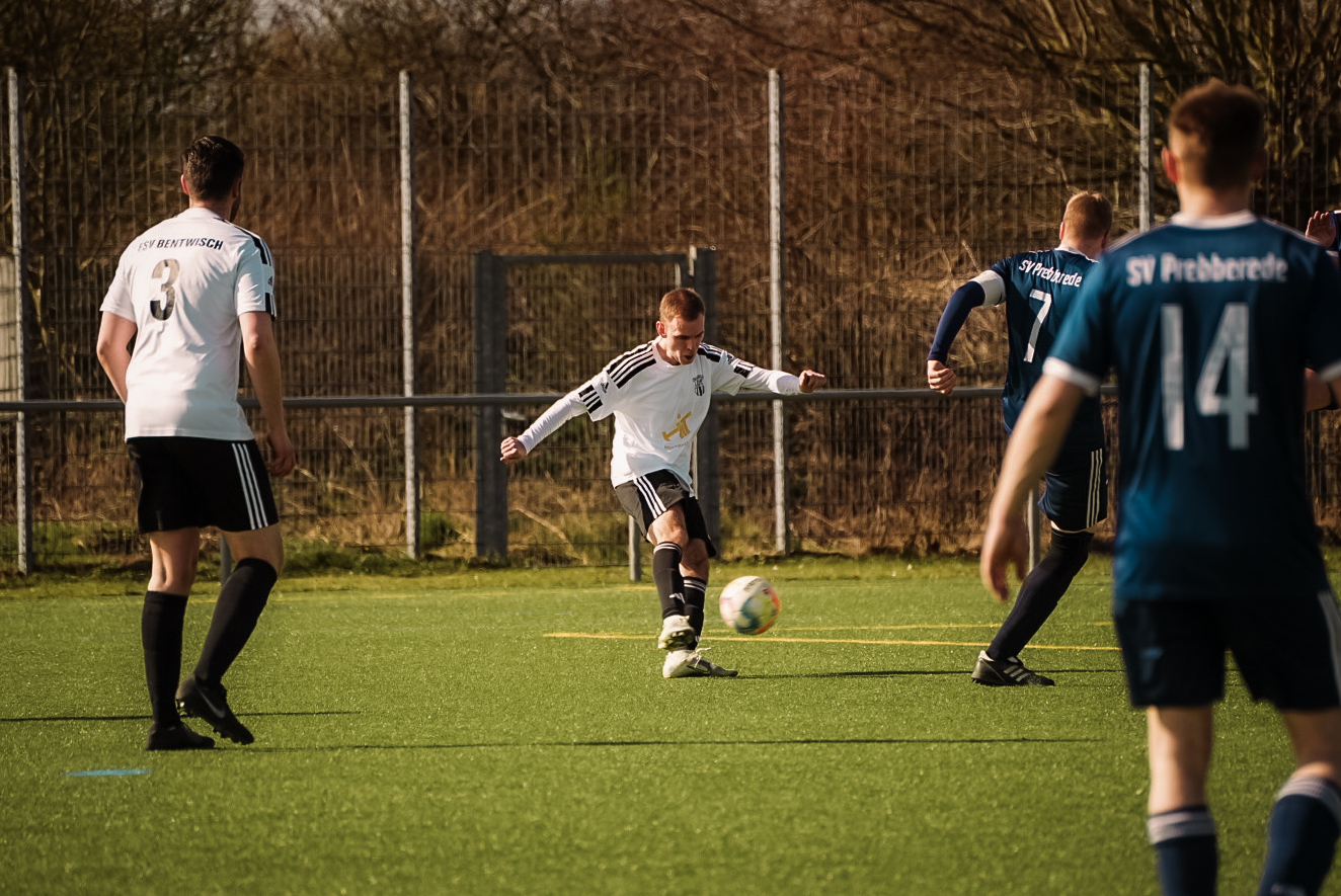 Während die Bentwischer mit dem Kopf noch in der Kabine waren, startete der SV Prebberede mit viel Schwung in den zweiten Durchgang und erzielte in der 47. Minute die 1:0-Führung. Die FSV-Kicker hatten jedoch eine schnelle Antwort parat. Nach einem Foul an den eingewechselten Felix Lewerenz versenkte Porath den fälligen Strafstoß zum Ausgleich (52.).