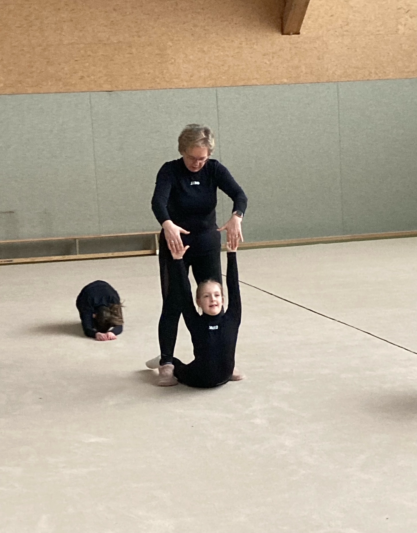 Teilnehmerzahl, so dass nicht alle Gymnastinnen starten können. Bis es soweit ist, trainieren unsere Nachwuchstrainerinnen Maja, Laura und Milla zusammen mit den Mädchen fleißig neue Übungen, damit die Mädels sich sehr gut präsentieren können.